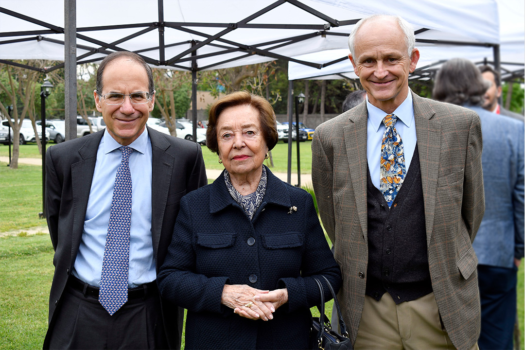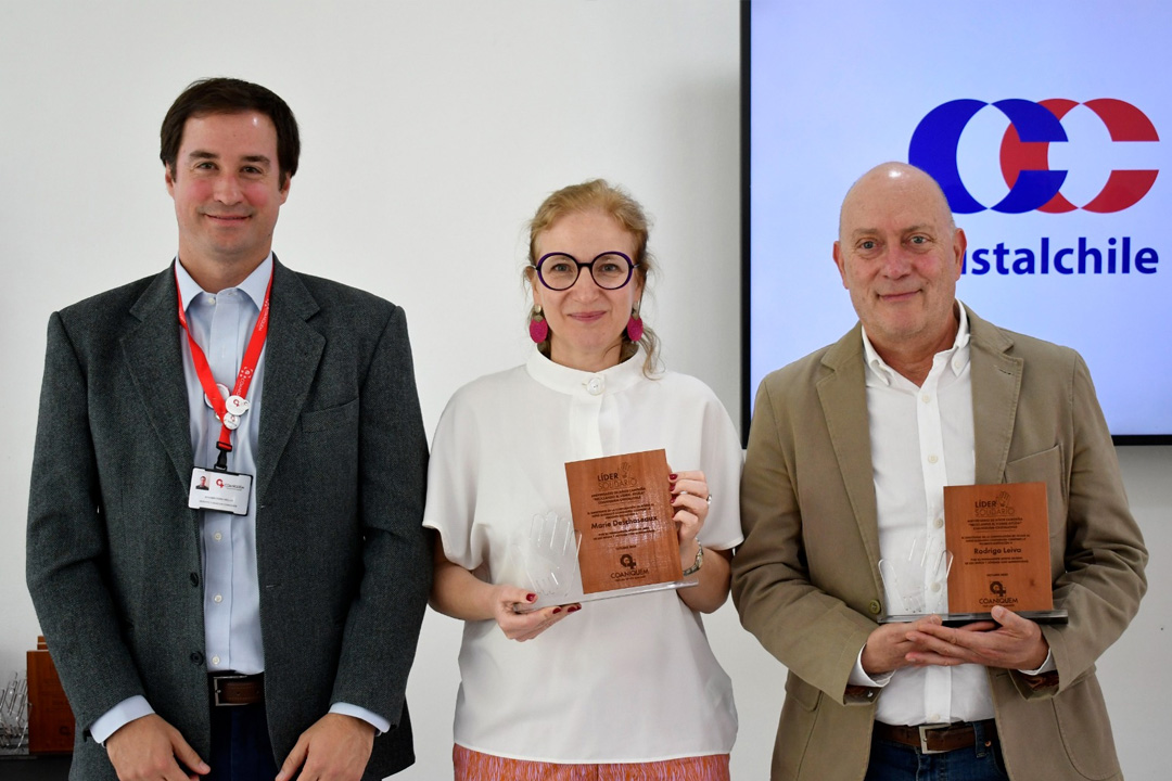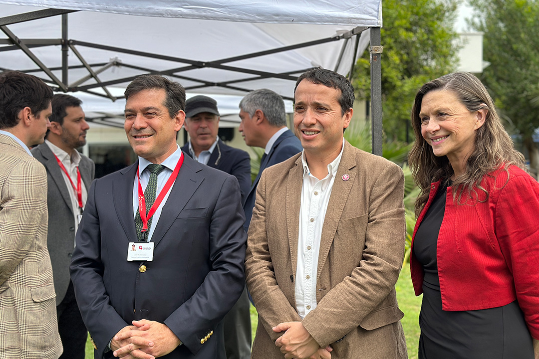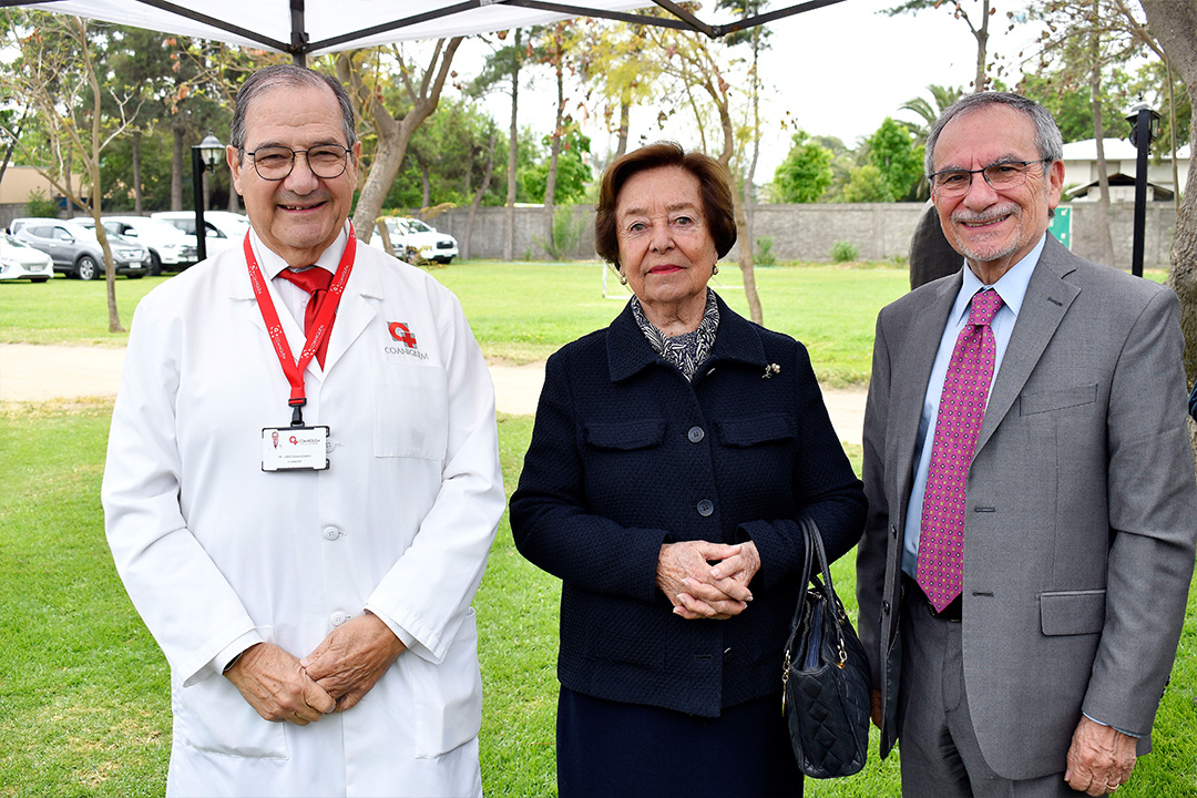 En la foto de izquierda a derecha; Cristóbal Eyzaguirre Vicepresidente del directorio de Cristalchile, la señora María Luisa Vial de Claro y Javier Irarrázaval Director de COANIQUEM.